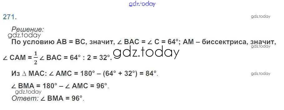 Ответы к Решение к задачам 271 Рабочей тетради по Геометрии для 7 класса Дудницын Просвещение 2017