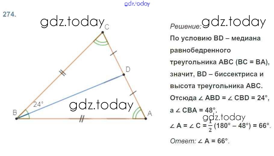 Ответы к Решение к задачам 274 Рабочей тетради по Геометрии для 7 класса Дудницын Просвещение 2017
