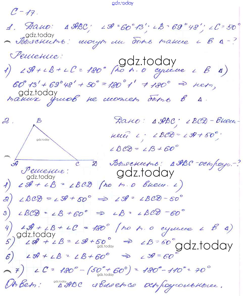 На страницах сайта gdz.today вы найдете учебный и вспомогательный материал, направленный на улучшения знаний школьной программы. ГДЗ - онлайн мир знаний СР-17. Варианты Решение к самостоятельным работам 1 Дидактическим материалам по Геометрии для 7 класса Зив, Мейлер Просвещение 2016