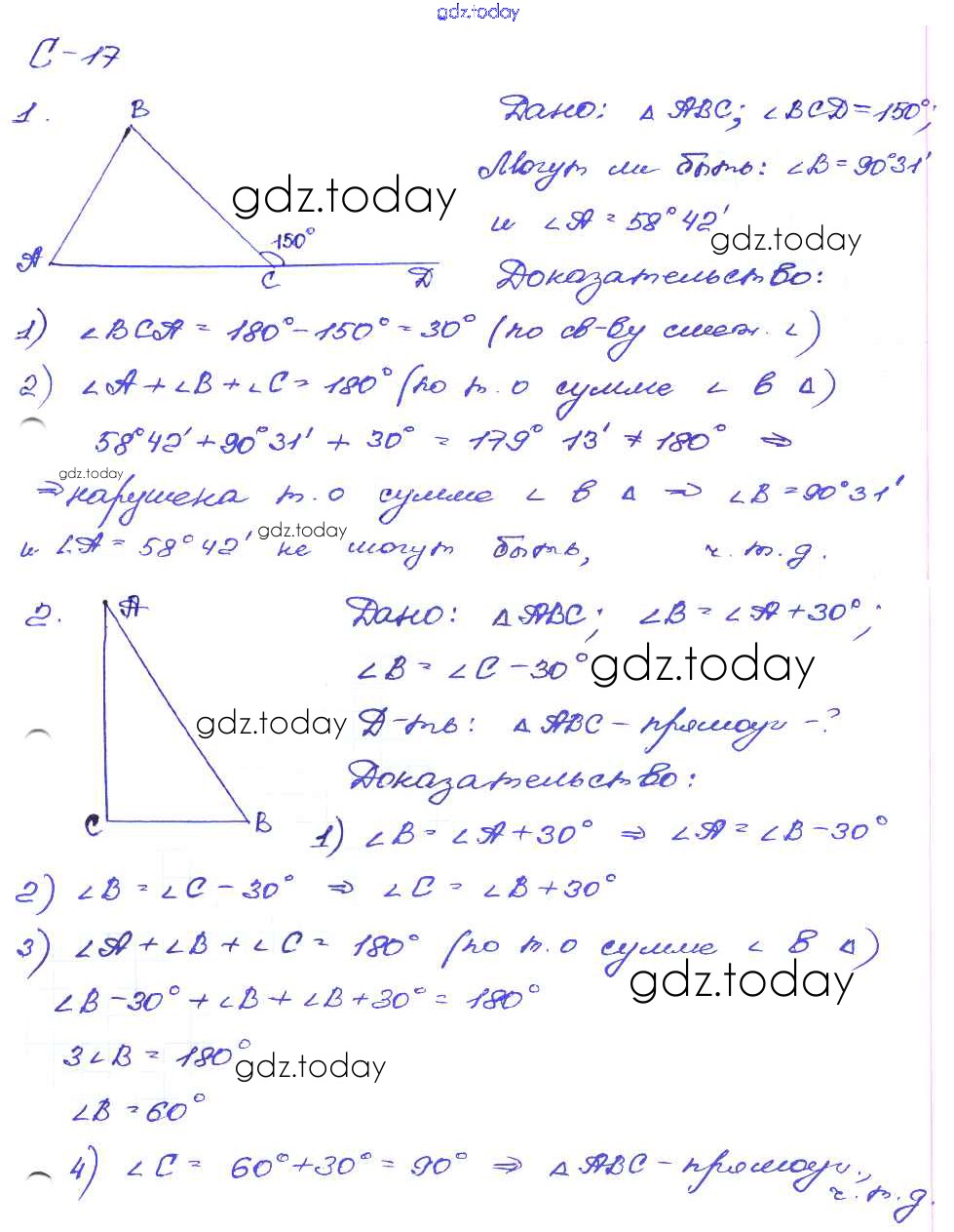 На страницах сайта gdz.today вы найдете учебный и вспомогательный материал, направленный на улучшения знаний школьной программы. ГДЗ - онлайн мир знаний СР-17. Варианты Решение к самостоятельным работам 2 Дидактическим материалам по Геометрии для 7 класса Зив, Мейлер Просвещение 2016