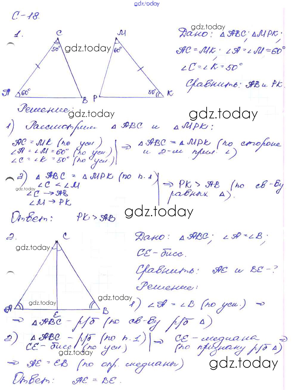 На страницах сайта gdz.today вы найдете учебный и вспомогательный материал, направленный на улучшения знаний школьной программы. ГДЗ - онлайн мир знаний СР-18. Варианты Решение к самостоятельным работам 2 Дидактическим материалам по Геометрии для 7 класса Зив, Мейлер Просвещение 2016