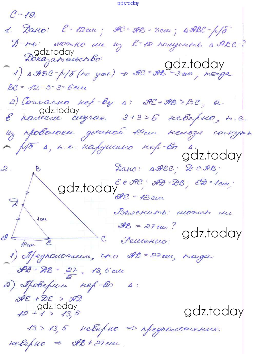 На страницах сайта gdz.today вы найдете учебный и вспомогательный материал, направленный на улучшения знаний школьной программы. ГДЗ - онлайн мир знаний СР-19. Варианты Решение к самостоятельным работам 1 Дидактическим материалам по Геометрии для 7 класса Зив, Мейлер Просвещение 2016