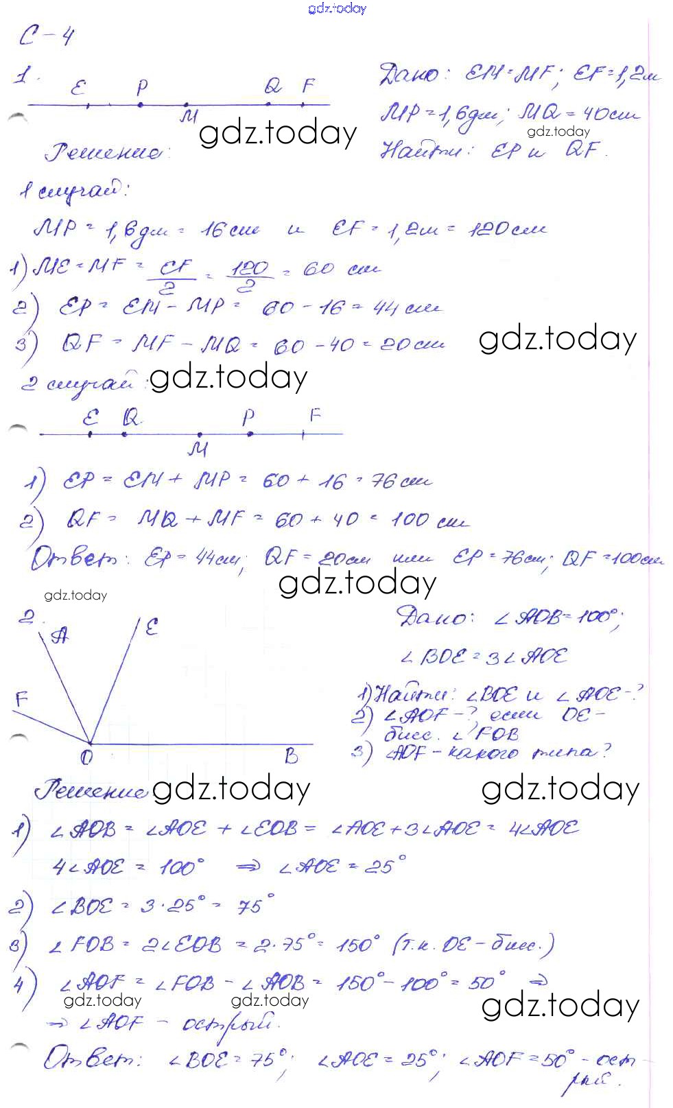 Ответы к СР-4. Варианты Решение к самостоятельным работам 4 Дидактическим материалам по Геометрии для 7 класса Зив, Мейлер Просвещение 2016
