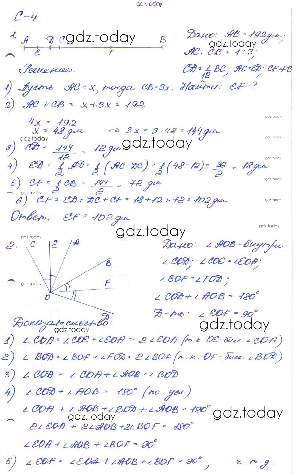 Ответы к СР-4. Варианты Решение к самостоятельным работам 5 Дидактическим материалам по Геометрии для 7 класса Зив, Мейлер Просвещение 2016