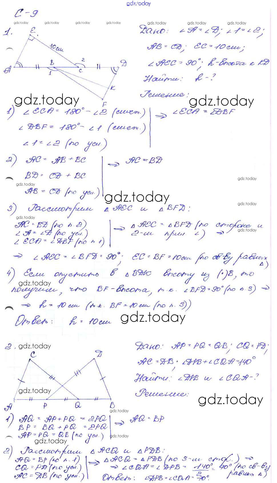 Ответы к СР-9. Варианты Решение к самостоятельным работам 5 Дидактическим материалам по Геометрии для 7 класса Зив, Мейлер Просвещение 2016