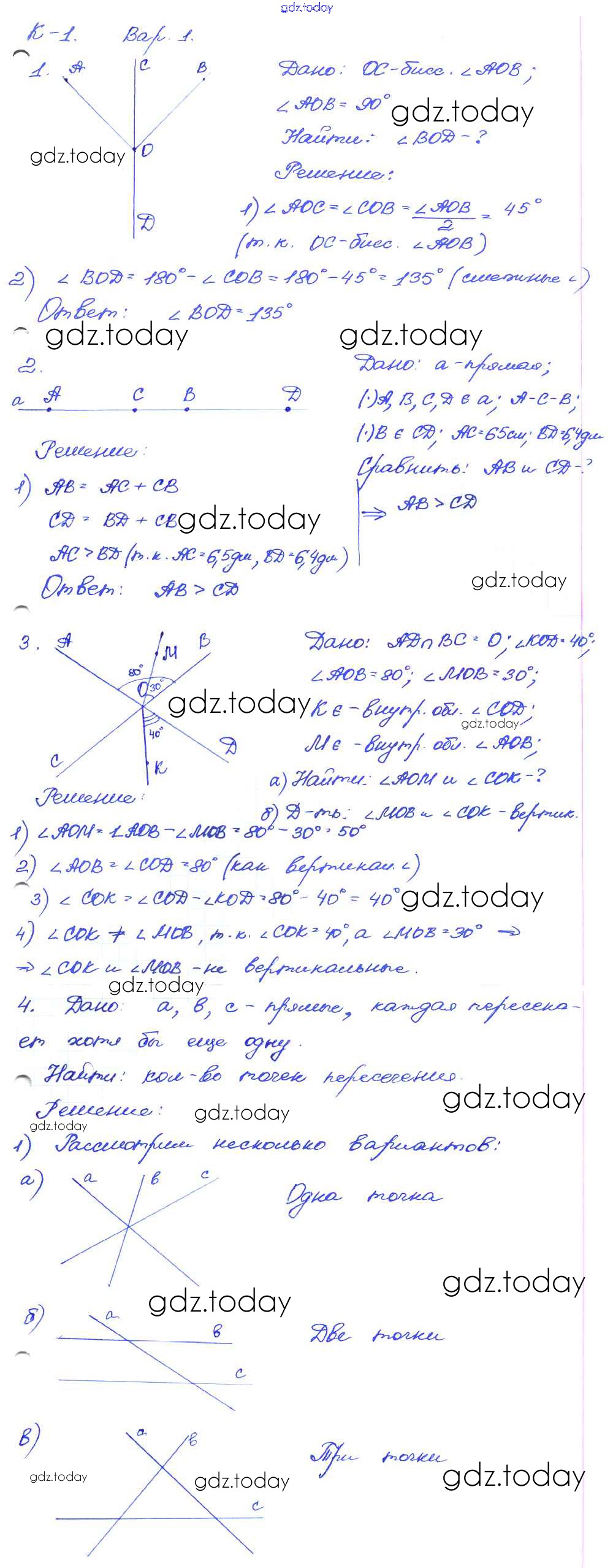 На страницах сайта gdz.today вы найдете учебный и вспомогательный материал, направленный на улучшения знаний школьной программы. ГДЗ - онлайн мир знаний КР-1. Варианты Решение к контрольным работам 1 Дидактическим материалам по Геометрии для 7 класса Зив, Мейлер Просвещение 2016