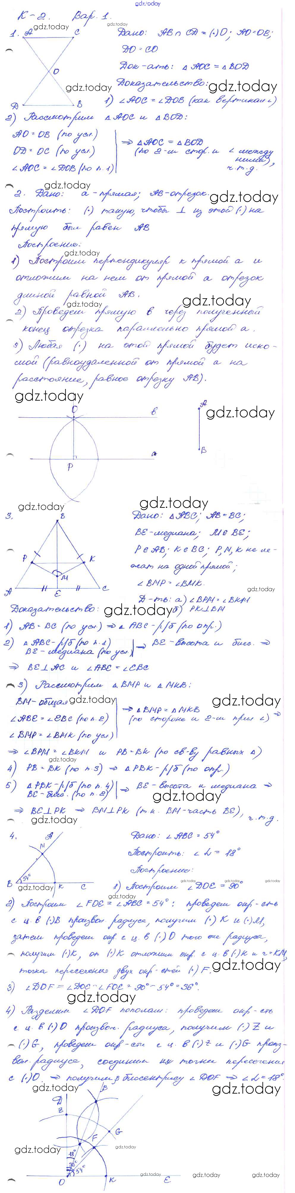Ответы к КР-2. Варианты Решение к контрольным работам 1 Дидактическим материалам по Геометрии для 7 класса Зив, Мейлер Просвещение 2016