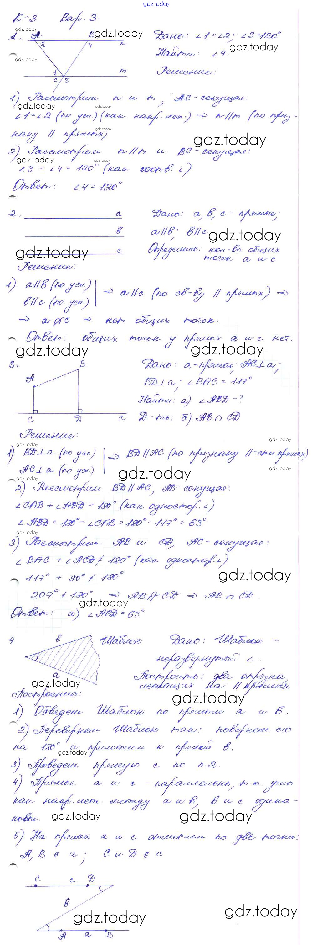 На страницах сайта gdz.today вы найдете учебный и вспомогательный материал, направленный на улучшения знаний школьной программы. ГДЗ - онлайн мир знаний КР-3. Варианты Решение к контрольным работам 3 Дидактическим материалам по Геометрии для 7 класса Зив, Мейлер Просвещение 2016
