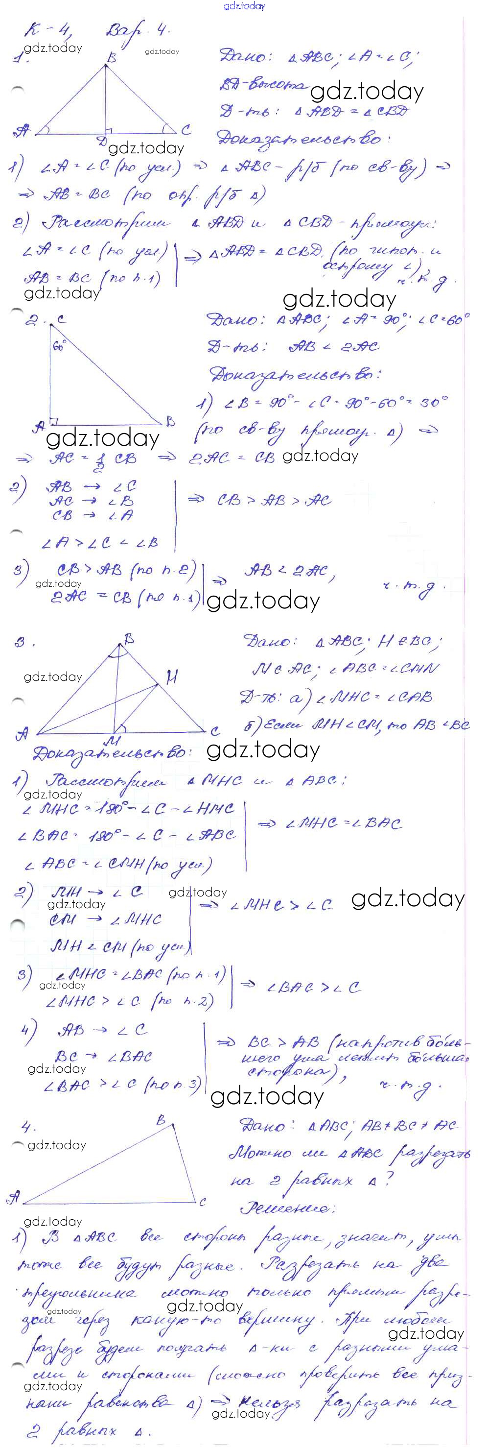 На страницах сайта gdz.today вы найдете учебный и вспомогательный материал, направленный на улучшения знаний школьной программы. ГДЗ - онлайн мир знаний КР-4. Варианты Решение к контрольным работам 4 Дидактическим материалам по Геометрии для 7 класса Зив, Мейлер Просвещение 2016