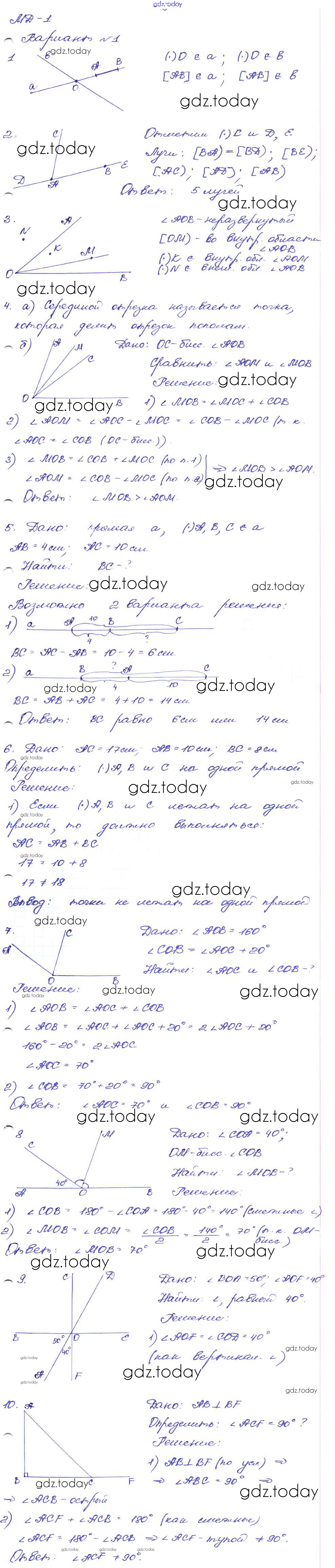 Ответы к МД-1. Варианты Решение к математическим диктантам 1 Дидактическим материалам по Геометрии для 7 класса Зив, Мейлер Просвещение 2016