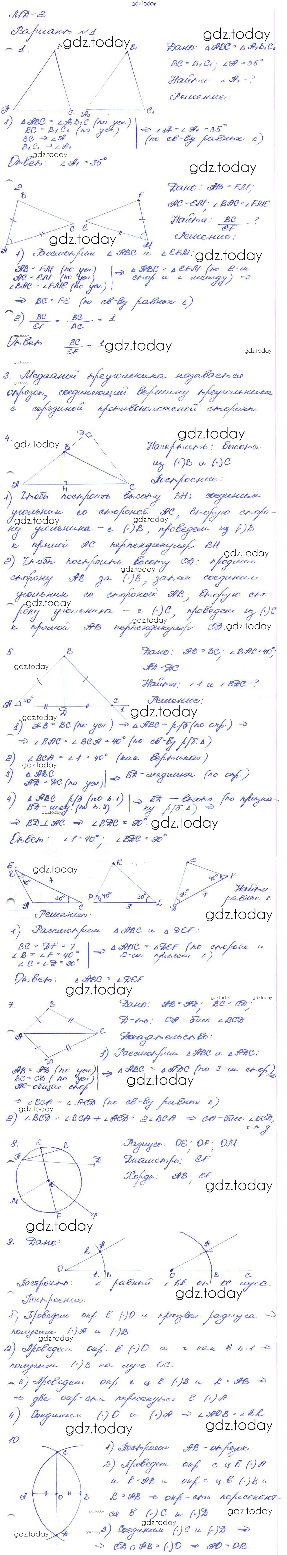 На страницах сайта gdz.today вы найдете учебный и вспомогательный материал, направленный на улучшения знаний школьной программы. ГДЗ - онлайн мир знаний МД-2. Варианты Решение к математическим диктантам 1 Дидактическим материалам по Геометрии для 7 класса Зив, Мейлер Просвещение 2016