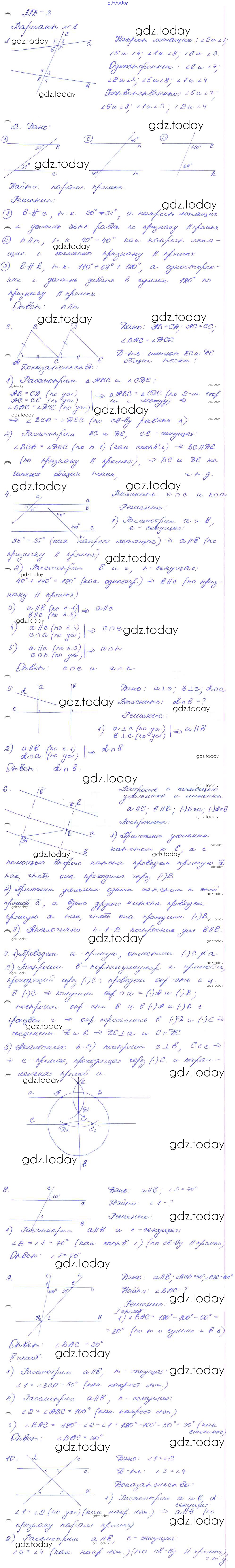 Ответы к МД-3. Варианты Решение к математическим диктантам 1 Дидактическим материалам по Геометрии для 7 класса Зив, Мейлер Просвещение 2016