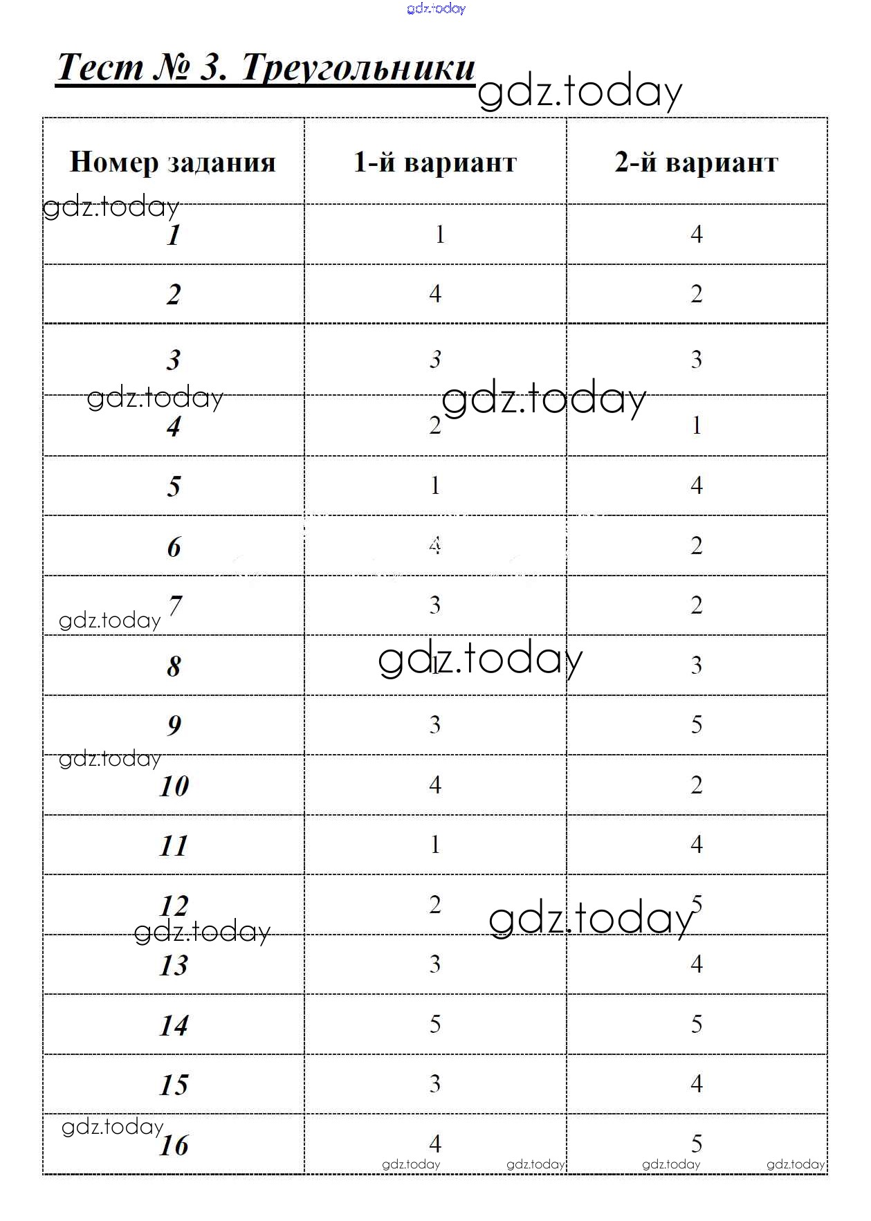На страницах сайта gdz.today вы найдете учебный и вспомогательный материал, направленный на улучшения знаний школьной программы. ГДЗ - онлайн мир знаний Решение к тестам Тест 3 Тестам по Геометрии для 7 класса Звавич, Потоскуев Экзамен УМК 2013
