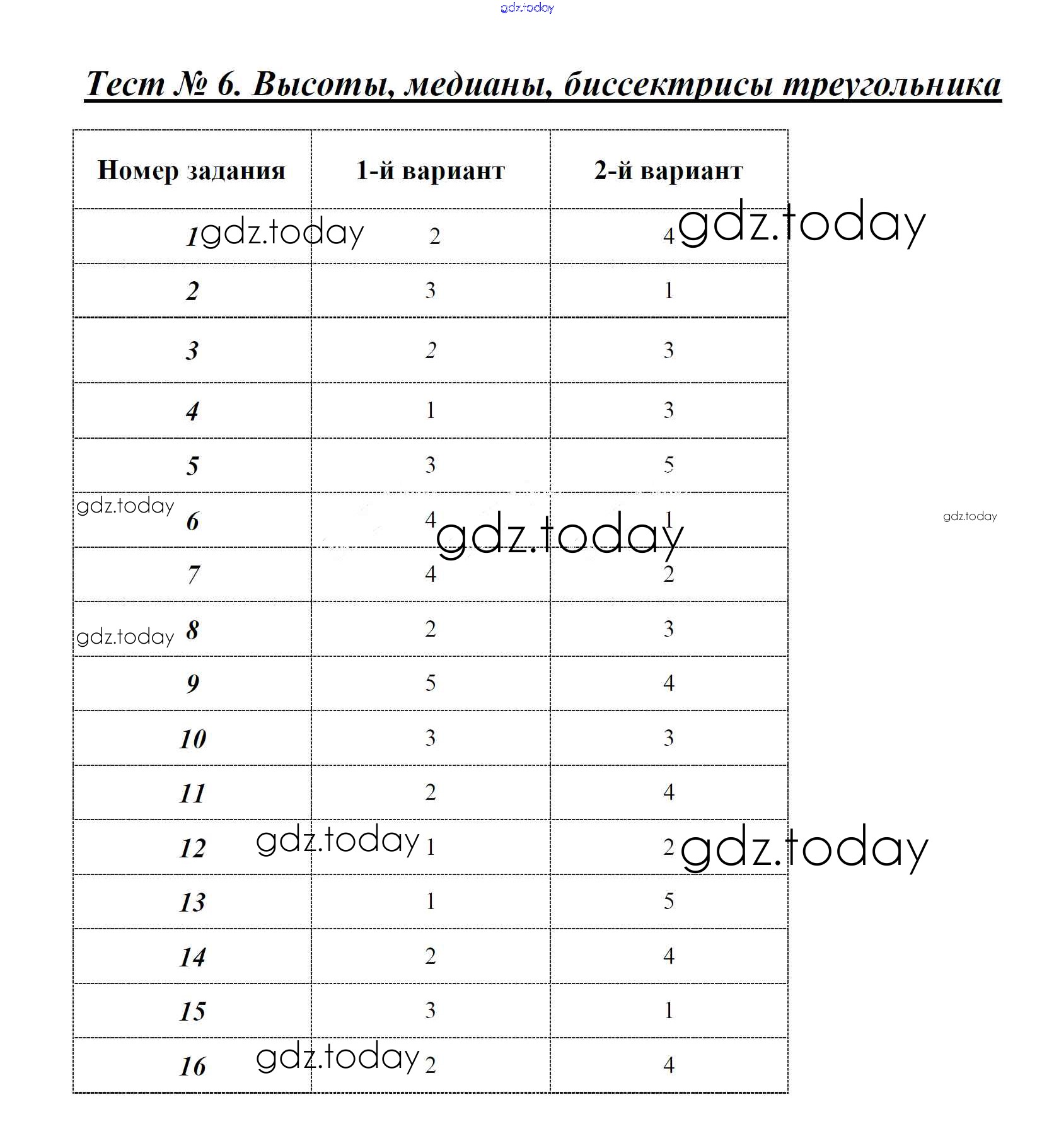 На страницах сайта gdz.today вы найдете учебный и вспомогательный материал, направленный на улучшения знаний школьной программы. ГДЗ - онлайн мир знаний Решение к тестам Тест 6 Тестам по Геометрии для 7 класса Звавич, Потоскуев Экзамен УМК 2013