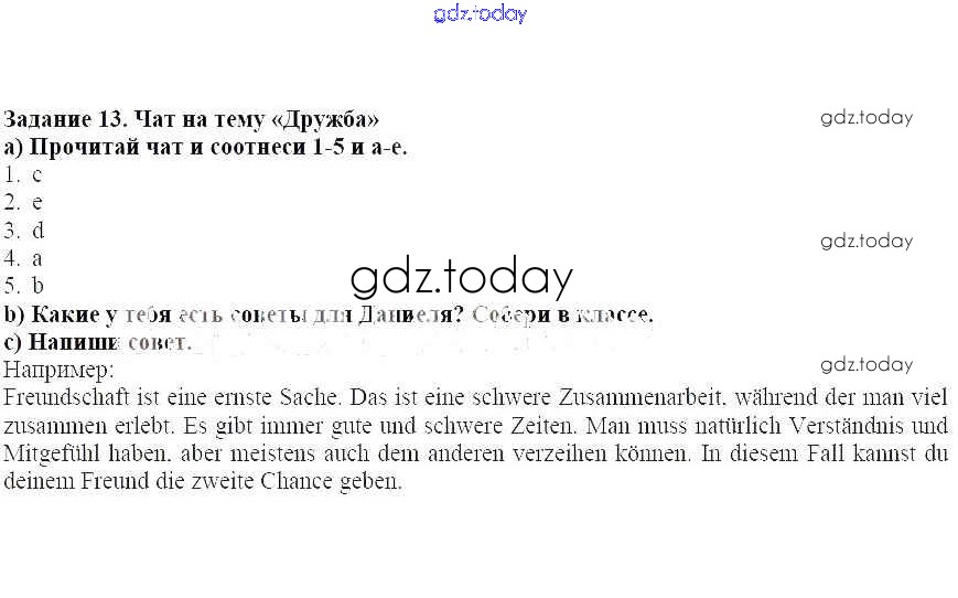 На страницах сайта gdz.today вы найдете учебный и вспомогательный материал, направленный на улучшения знаний школьной программы. ГДЗ - онлайн мир знаний Решение к главе 3. Дружба 13 Учебнику по Немецкому языку для 7 класса Аверин, Джин Просвещение Horizonte 2016