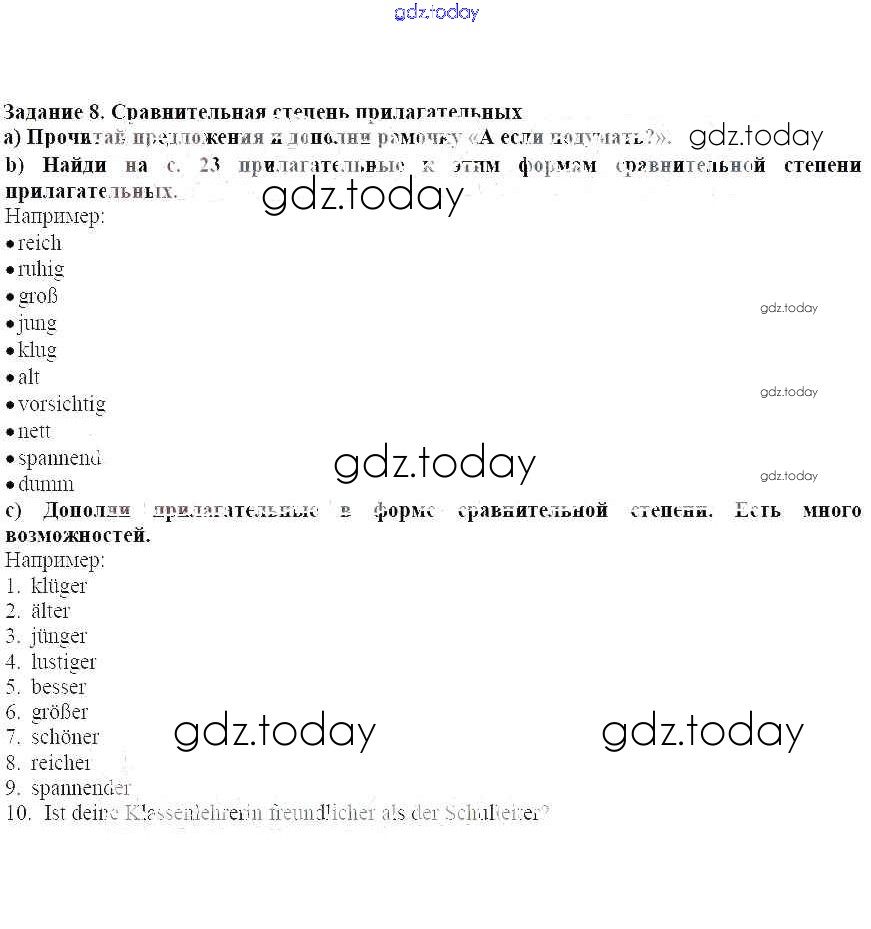 На страницах сайта gdz.today вы найдете учебный и вспомогательный материал, направленный на улучшения знаний школьной программы. ГДЗ - онлайн мир знаний Решение к главе 3. Дружба 8 Учебнику по Немецкому языку для 7 класса Аверин, Джин Просвещение Horizonte 2016