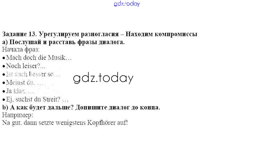 На страницах сайта gdz.today вы найдете учебный и вспомогательный материал, направленный на улучшения знаний школьной программы. ГДЗ - онлайн мир знаний Решение к главе 5. Совместная жизнь 13 Учебнику по Немецкому языку для 7 класса Аверин, Джин Просвещение Horizonte 2016