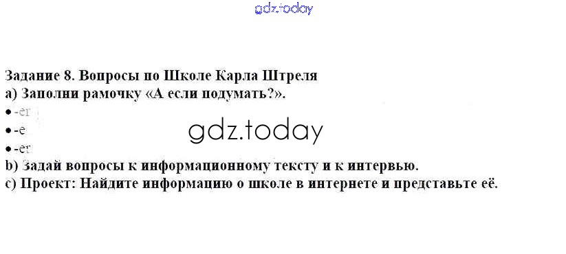 На страницах сайта gdz.today вы найдете учебный и вспомогательный материал, направленный на улучшения знаний школьной программы. ГДЗ - онлайн мир знаний Решение к главе 5. Совместная жизнь 8 Учебнику по Немецкому языку для 7 класса Аверин, Джин Просвещение Horizonte 2016
