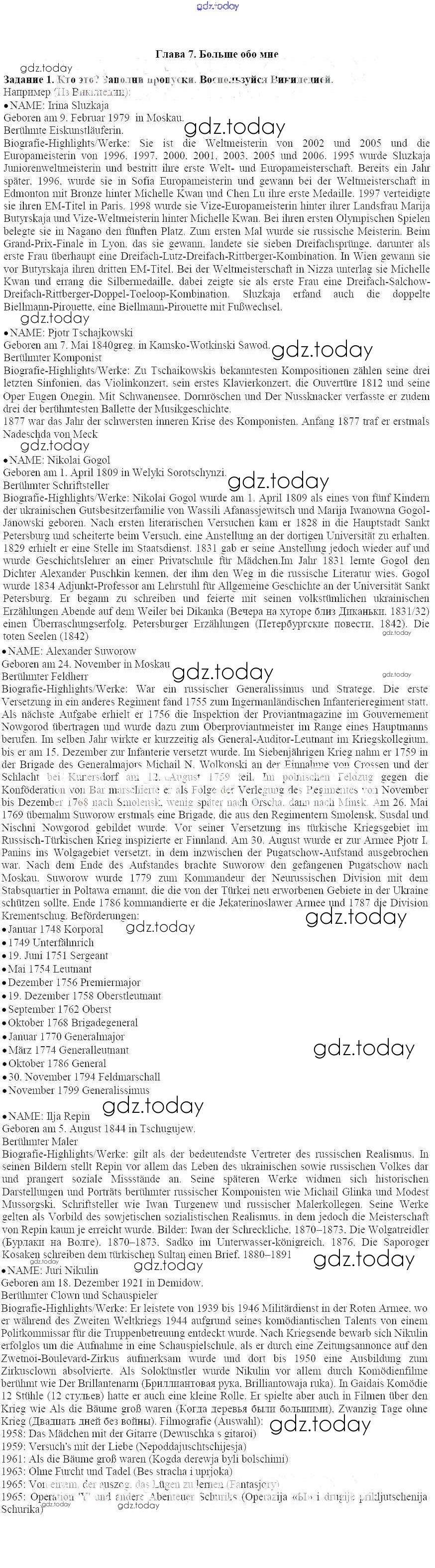 На страницах сайта gdz.today вы найдете учебный и вспомогательный материал, направленный на улучшения знаний школьной программы. ГДЗ - онлайн мир знаний Маленькая перемена Решение к главе 7. Больше обо мне 1 Учебнику по Немецкому языку для 7 класса Аверин, Джин Просвещение Horizonte 2016