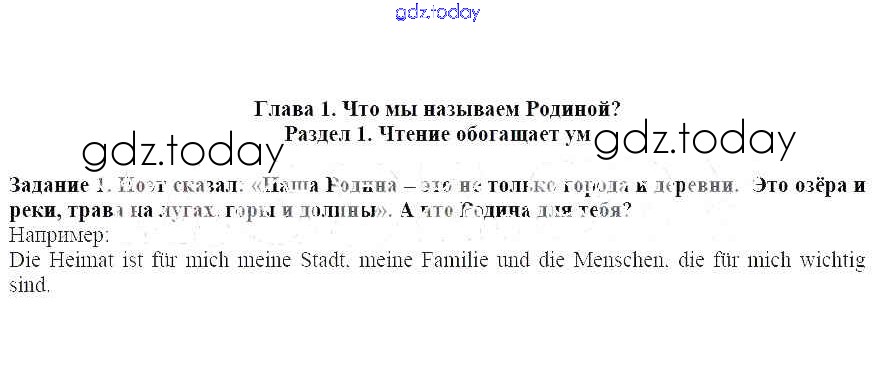 На страницах сайта gdz.today вы найдете учебный и вспомогательный материал, направленный на улучшения знаний школьной программы. ГДЗ - онлайн мир знаний Раздел 1. Чтение обогащает ум Решение к главе 1. Что мы называем Родиной 1 Учебнику по Немецкому языку для 7 класса Бим, Садомова Просвещение Академический школьный учебник 2019