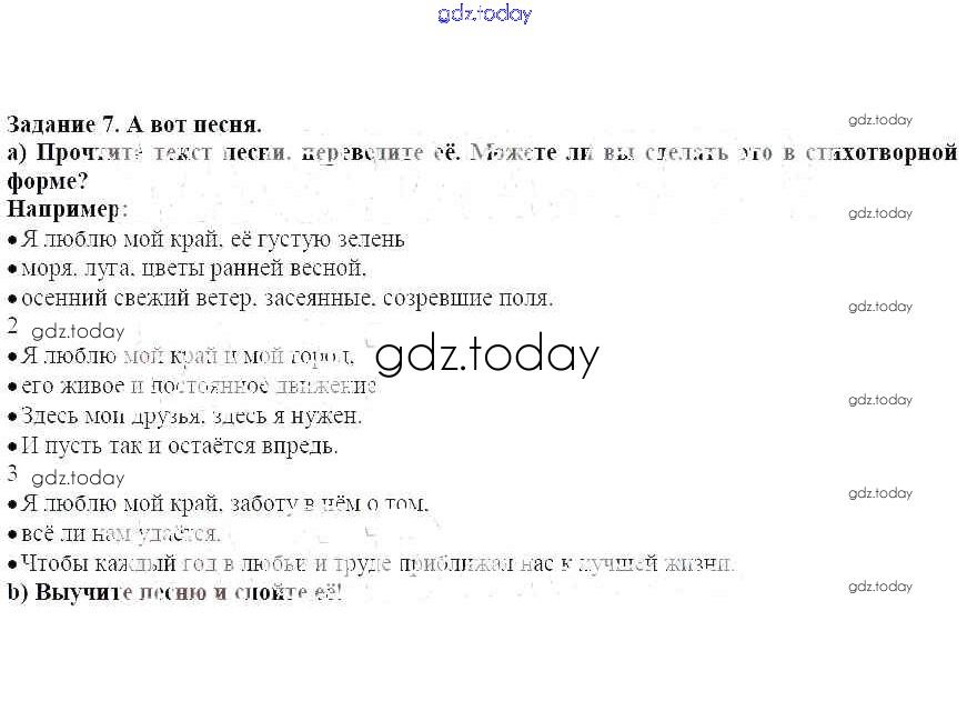 На страницах сайта gdz.today вы найдете учебный и вспомогательный материал, направленный на улучшения знаний школьной программы. ГДЗ - онлайн мир знаний Раздел 1. Чтение обогащает ум Решение к главе 1. Что мы называем Родиной 7 Учебнику по Немецкому языку для 7 класса Бим, Садомова Просвещение Академический школьный учебник 2019