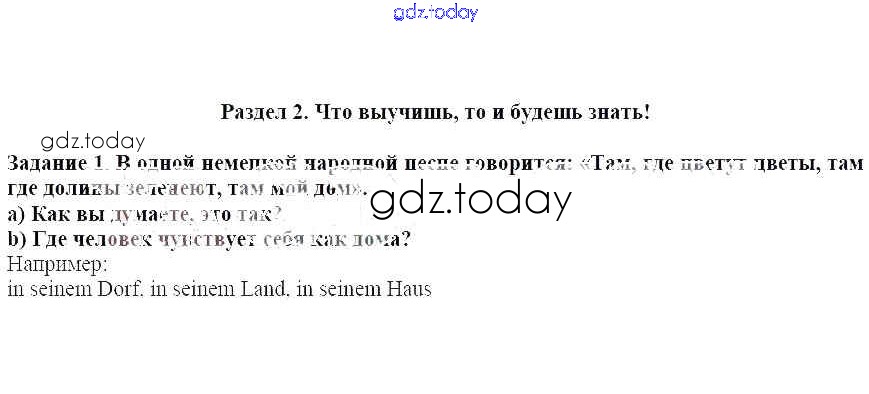 На страницах сайта gdz.today вы найдете учебный и вспомогательный материал, направленный на улучшения знаний школьной программы. ГДЗ - онлайн мир знаний Раздел 2. Что выучишь, то и будешь знать! Решение к главе 1. Что мы называем Родиной 1 Учебнику по Немецкому языку для 7 класса Бим, Садомова Просвещение Академический школьный учебник 2019