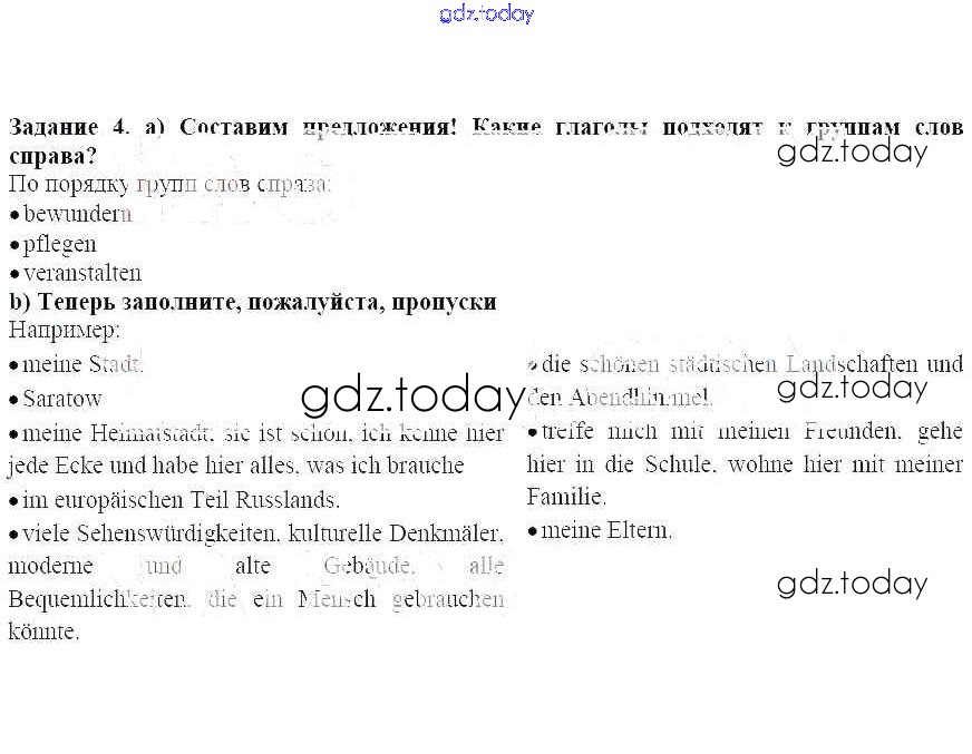 На страницах сайта gdz.today вы найдете учебный и вспомогательный материал, направленный на улучшения знаний школьной программы. ГДЗ - онлайн мир знаний Раздел 2. Что выучишь, то и будешь знать! Решение к главе 1. Что мы называем Родиной 4 Учебнику по Немецкому языку для 7 класса Бим, Садомова Просвещение Академический школьный учебник 2019
