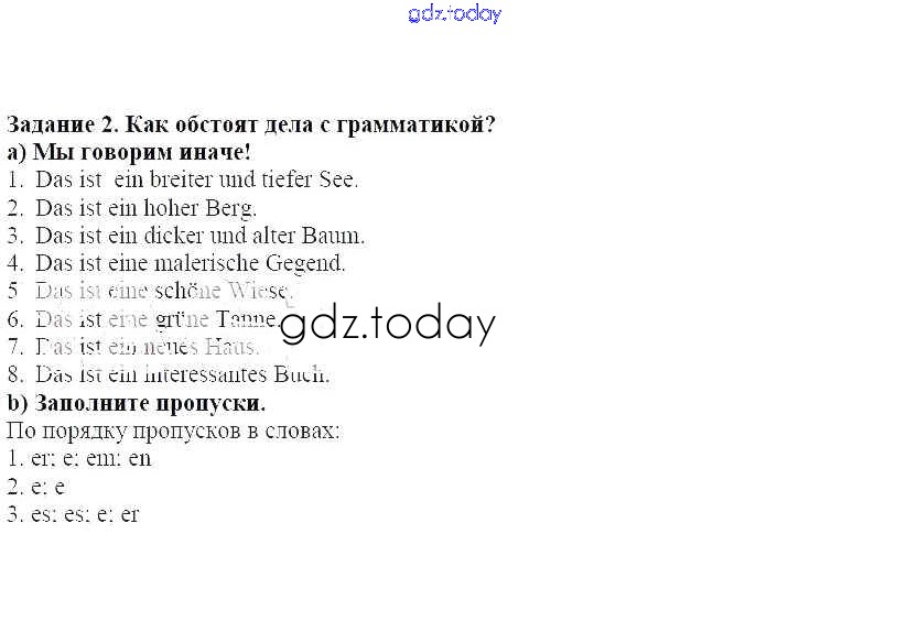 На страницах сайта gdz.today вы найдете учебный и вспомогательный материал, направленный на улучшения знаний школьной программы. ГДЗ - онлайн мир знаний Раздел 6. Мы проверяем, что мы уже умеем Решение к главе 1. Что мы называем Родиной 2 Учебнику по Немецкому языку для 7 класса Бим, Садомова Просвещение Академический школьный учебник 2019