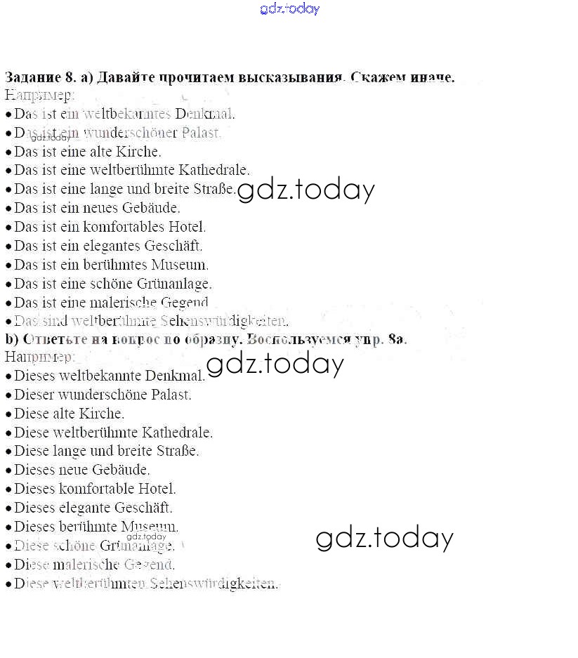 На страницах сайта gdz.today вы найдете учебный и вспомогательный материал, направленный на улучшения знаний школьной программы. ГДЗ - онлайн мир знаний Раздел 3. Грамматика. Такой ли она крепкий орешек Решение к главе 2. Облик города - это визитная карточка страны 8 Учебнику по Немецкому языку для 7 класса Бим, Садомова Просвещение Академический школьный учебник 2019