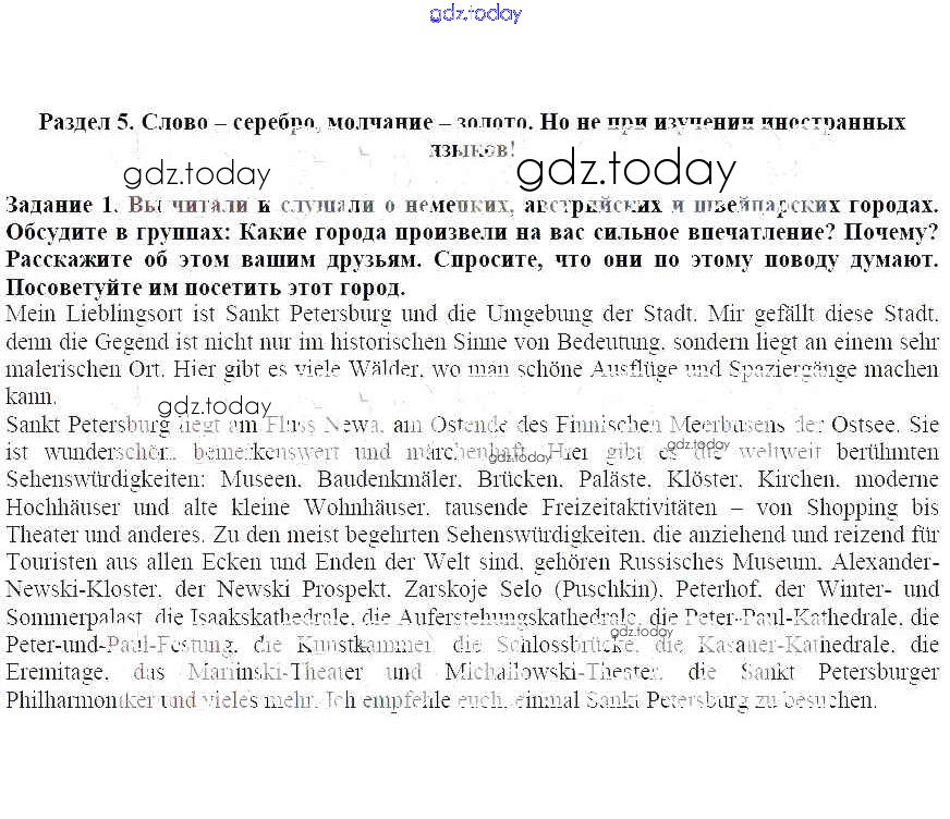 На страницах сайта gdz.today вы найдете учебный и вспомогательный материал, направленный на улучшения знаний школьной программы. ГДЗ - онлайн мир знаний Раздел 5. Слово - серебро, молчание - золото. Но не при изучении иностранных языков! Решение к главе 2. Облик города - это визитная карточка страны 1 Учебнику по Немецкому языку для 7 класса Бим, Садомова Просвещение Академический школьный учебник 2019