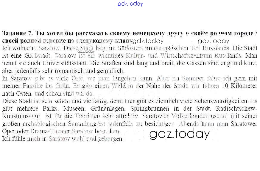На страницах сайта gdz.today вы найдете учебный и вспомогательный материал, направленный на улучшения знаний школьной программы. ГДЗ - онлайн мир знаний Раздел 5. Слово - серебро, молчание - золото. Но не при изучении иностранных языков! Решение к главе 2. Облик города - это визитная карточка страны 7 Учебнику по Немецкому языку для 7 класса Бим, Садомова Просвещение Академический школьный учебник 2019