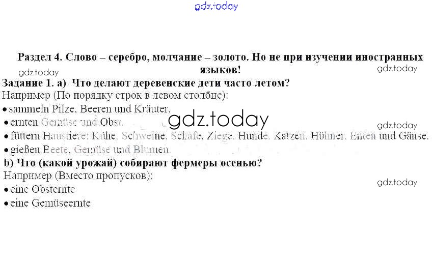 Ответы к Раздел 4. Слово - серебро, молчание - золото Решение к главе 4. В деревне есть тоже много интересного 1 Учебнику по Немецкому языку для 7 класса Бим, Садомова Просвещение Академический школьный учебник 2019