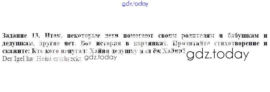 На страницах сайта gdz.today вы найдете учебный и вспомогательный материал, направленный на улучшения знаний школьной программы. ГДЗ - онлайн мир знаний Раздел 6. Мы проверяем, что мы уже умеем Решение к главе 4. В деревне есть тоже много интересного 13 Учебнику по Немецкому языку для 7 класса Бим, Садомова Просвещение Академический школьный учебник 2019