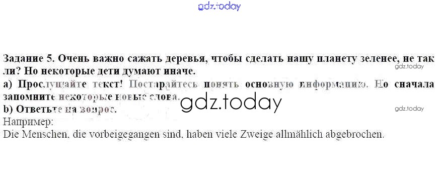 На страницах сайта gdz.today вы найдете учебный и вспомогательный материал, направленный на улучшения знаний школьной программы. ГДЗ - онлайн мир знаний Раздел 5. Мы внимательно слушаем Решение к главе 5. Защита окружающей среды - самая актуальная проблема на сегодняшний день. Не так ли 5 Учебнику по Немецкому языку для 7 класса Бим, Садомова Просвещение Академический школьный учебник 2019