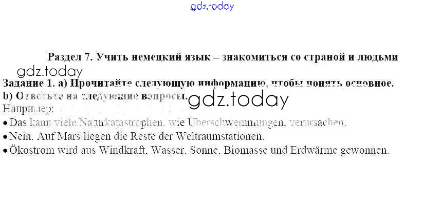 На страницах сайта gdz.today вы найдете учебный и вспомогательный материал, направленный на улучшения знаний школьной программы. ГДЗ - онлайн мир знаний Раздел 7. Учить немецкий язык - знакомиться со страной и людьми Решение к главе 5. Защита окружающей среды - самая актуальная проблема на сегодняшний день. Не так ли 1 Учебнику по Немецкому языку для 7 класса Бим, Садомова Просвещение Академический школьный учебник 2019