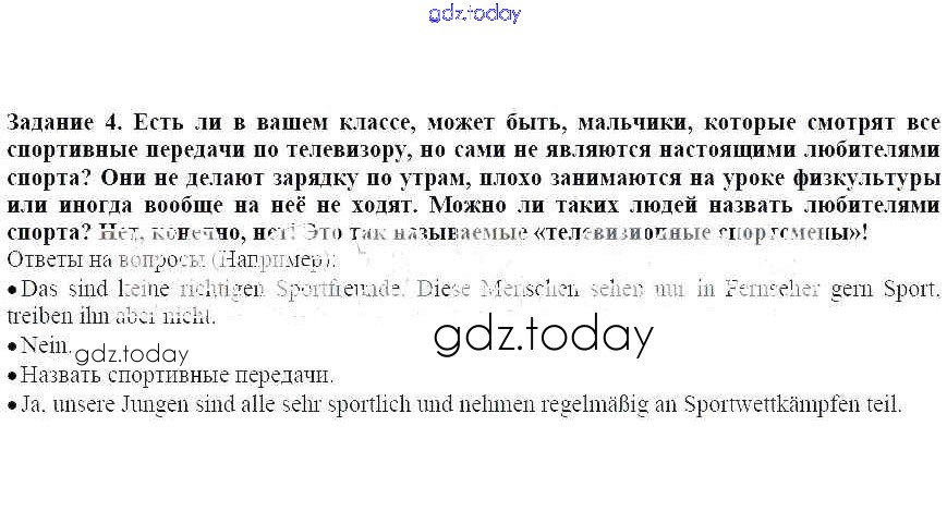 На страницах сайта gdz.today вы найдете учебный и вспомогательный материал, направленный на улучшения знаний школьной программы. ГДЗ - онлайн мир знаний Раздел 1. Чтение обогащает ум Решение к главе 6. В здоровом теле - здоровый дух 4 Учебнику по Немецкому языку для 7 класса Бим, Садомова Просвещение Академический школьный учебник 2019