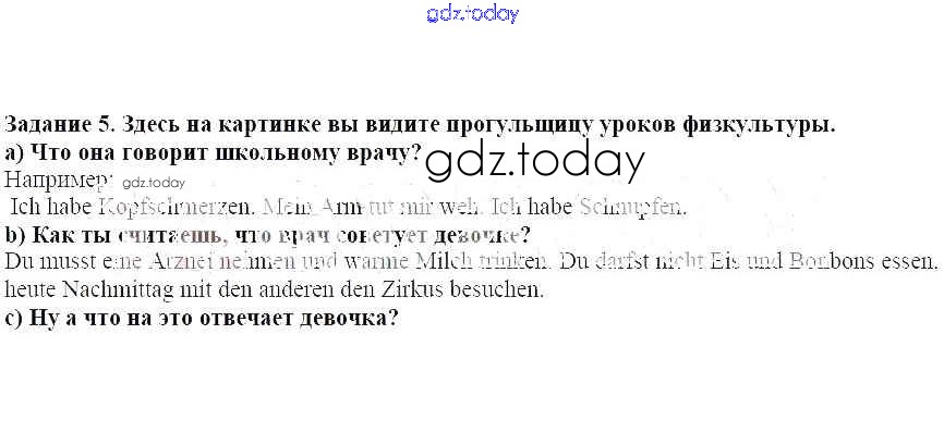На страницах сайта gdz.today вы найдете учебный и вспомогательный материал, направленный на улучшения знаний школьной программы. ГДЗ - онлайн мир знаний Раздел 2. Что выучишь, то и будешь знать! Решение к главе 6. В здоровом теле - здоровый дух 5 Учебнику по Немецкому языку для 7 класса Бим, Садомова Просвещение Академический школьный учебник 2019