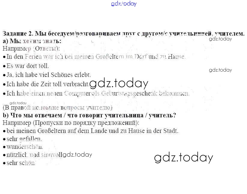 На страницах сайта gdz.today вы найдете учебный и вспомогательный материал, направленный на улучшения знаний школьной программы. ГДЗ - онлайн мир знаний Курс повторения. После летних каникул 2 Учебнику по Немецкому языку для 7 класса Бим, Садомова Просвещение Академический школьный учебник 2019