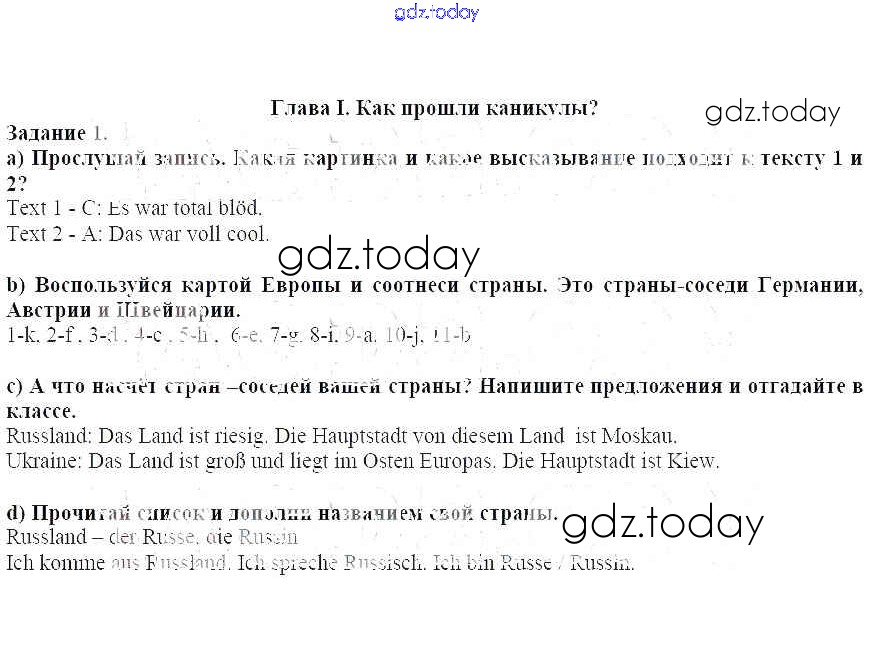 Ответы к Решение к главе 1. Как прошли каникулы 1 Рабочей тетради по Немецкому языку для 7 класса Аверин, Джин Просвещение Horizonte 2013