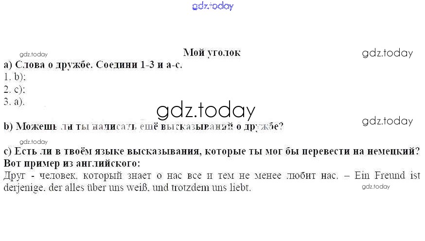 На страницах сайта gdz.today вы найдете учебный и вспомогательный материал, направленный на улучшения знаний школьной программы. ГДЗ - онлайн мир знаний Фитнес-центр немецкого языка Решение к главе 3. Дружба 2 Рабочей тетради по Немецкому языку для 7 класса Аверин, Джин Просвещение Horizonte 2013