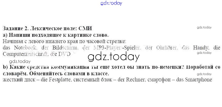 На страницах сайта gdz.today вы найдете учебный и вспомогательный материал, направленный на улучшения знаний школьной программы. ГДЗ - онлайн мир знаний Решение к главе 4. Изображения и звуки 2 Рабочей тетради по Немецкому языку для 7 класса Аверин, Джин Просвещение Horizonte 2013