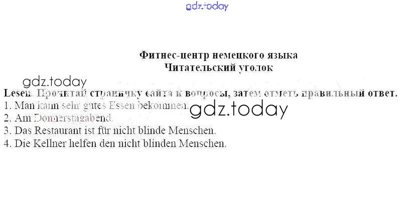 На страницах сайта gdz.today вы найдете учебный и вспомогательный материал, направленный на улучшения знаний школьной программы. ГДЗ - онлайн мир знаний Фитнес-центр немецкого языка Решение к главе 5. Совместная жизнь 1 Рабочей тетради по Немецкому языку для 7 класса Аверин, Джин Просвещение Horizonte 2013