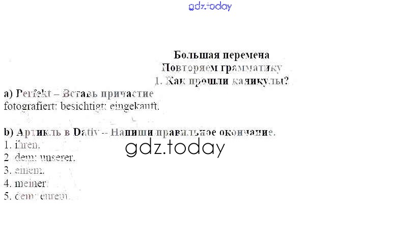 На страницах сайта gdz.today вы найдете учебный и вспомогательный материал, направленный на улучшения знаний школьной программы. ГДЗ - онлайн мир знаний Повторяем грамматику Большая перемена - На шаг вперёд - Что я теперь могу 1 Рабочей тетради по Немецкому языку для 7 класса Аверин, Джин Просвещение Horizonte 2013
