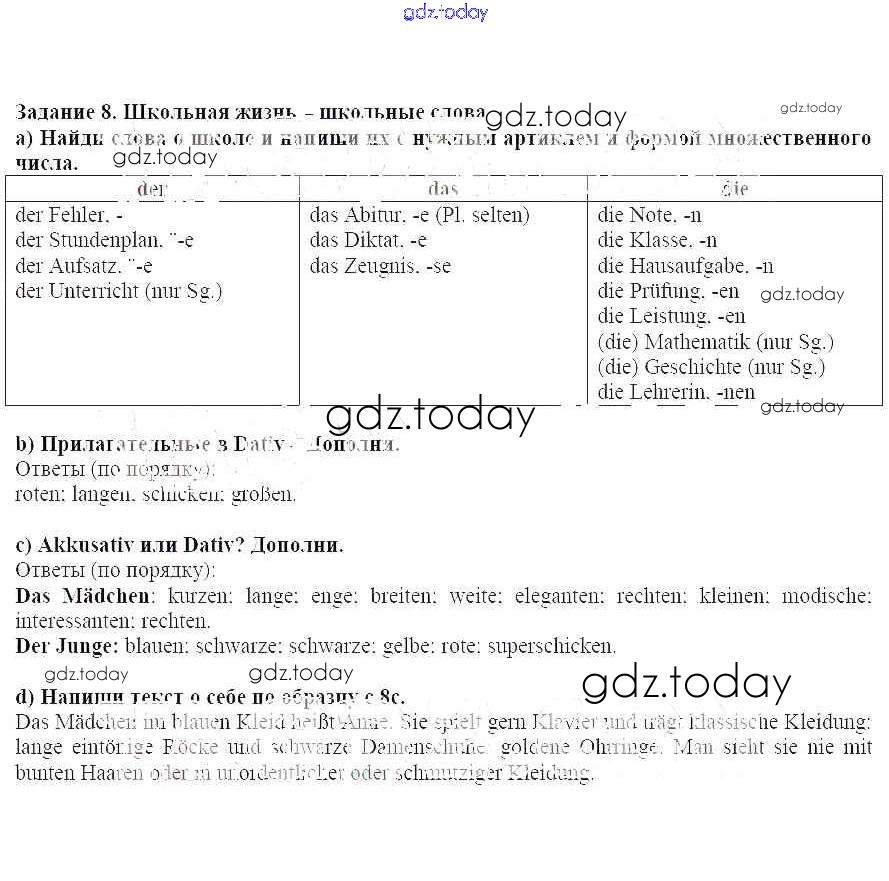 На страницах сайта gdz.today вы найдете учебный и вспомогательный материал, направленный на улучшения знаний школьной программы. ГДЗ - онлайн мир знаний Решение к главе 7. Больше обо мне 8 Рабочей тетради по Немецкому языку для 7 класса Аверин, Джин Просвещение Horizonte 2013