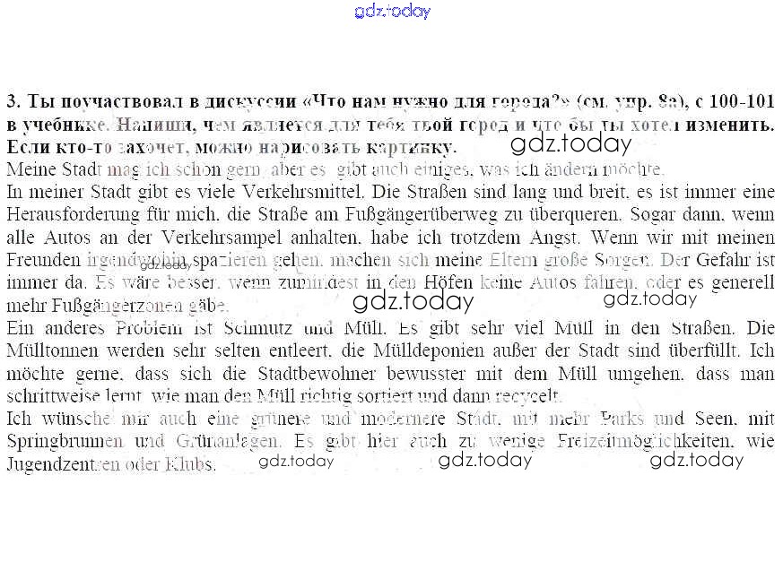 На страницах сайта gdz.today вы найдете учебный и вспомогательный материал, направленный на улучшения знаний школьной программы. ГДЗ - онлайн мир знаний Чтение обогащает ум Решение к главе 3. Жизнь в современном городе. Какие здесь есть проблемы 3 Рабочей тетради по Немецкому языку для 7 класса Бим, Садомова Просвещение 2012