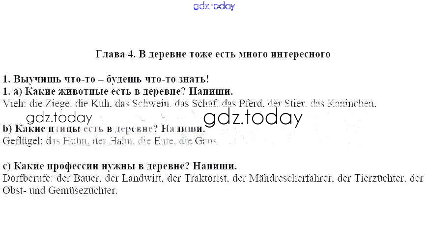 На страницах сайта gdz.today вы найдете учебный и вспомогательный материал, направленный на улучшения знаний школьной программы. ГДЗ - онлайн мир знаний Выучишь что-то – будешь что-то знать! Решение к главе 4. В деревне тоже есть много интересного 1 Рабочей тетради по Немецкому языку для 7 класса Бим, Садомова Просвещение 2012