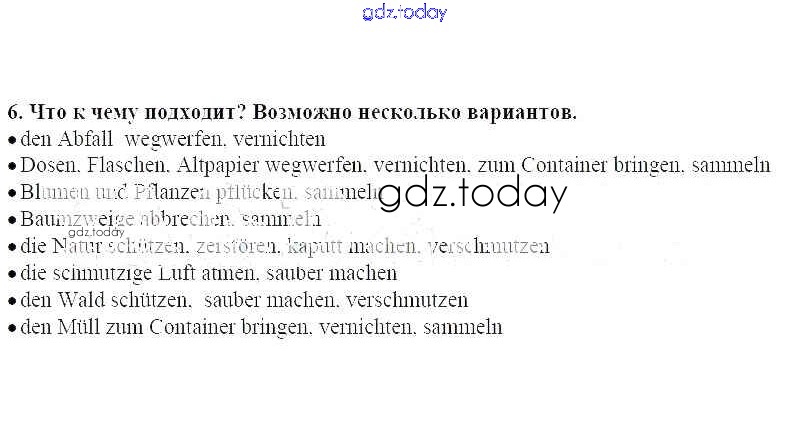 На страницах сайта gdz.today вы найдете учебный и вспомогательный материал, направленный на улучшения знаний школьной программы. ГДЗ - онлайн мир знаний Выучишь что-то – будешь что-то знать! Решение к главе 5. Защита окружающей среды – самая актуальная проблема современности. Не так ли 6 Рабочей тетради по Немецкому языку для 7 класса Бим, Садомова Просвещение 2012