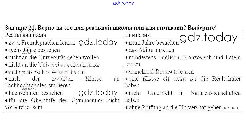 На страницах сайта gdz.today вы найдете учебный и вспомогательный материал, направленный на улучшения знаний школьной программы. ГДЗ - онлайн мир знаний Урок 2. В какую школу мне пойти Решение к главе 1. Искусство учиться правильно 21 Учебнику по Немецкому языку для 7 класса Радченко, Хебелер Дрофа Alles Klar! 2020