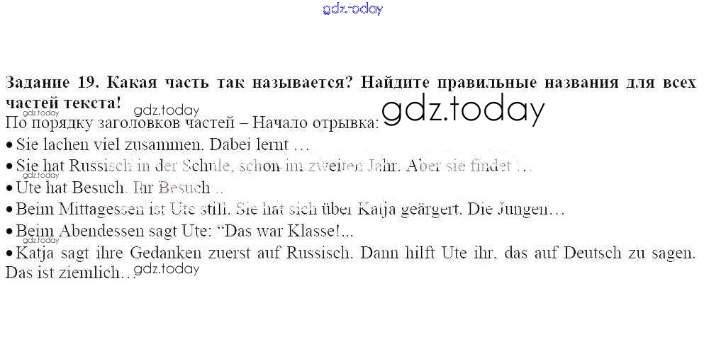 На страницах сайта gdz.today вы найдете учебный и вспомогательный материал, направленный на улучшения знаний школьной программы. ГДЗ - онлайн мир знаний Урок 4. Немецкий или английский язык Решение к главе 1. Искусство учиться правильно 19 Учебнику по Немецкому языку для 7 класса Радченко, Хебелер Дрофа Alles Klar! 2020