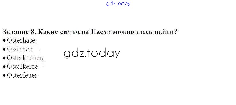 На страницах сайта gdz.today вы найдете учебный и вспомогательный материал, направленный на улучшения знаний школьной программы. ГДЗ - онлайн мир знаний Урок 12. Немецкие пасхальные обычаи Решение к главе 3. Мы отправляемся в южную Германию! 8 Учебнику по Немецкому языку для 7 класса Радченко, Хебелер Дрофа Alles Klar! 2020